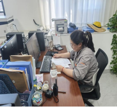 办公室里,思维在燥热中保持清晰。键盘敲击声里藏着高效的节奏,文件审阅的目光中透着责任的重量。她们用冷静对抗暑热,用细致打磨方案,每一次精益求精的推敲,都是“严谨务实”文化的日常践行。